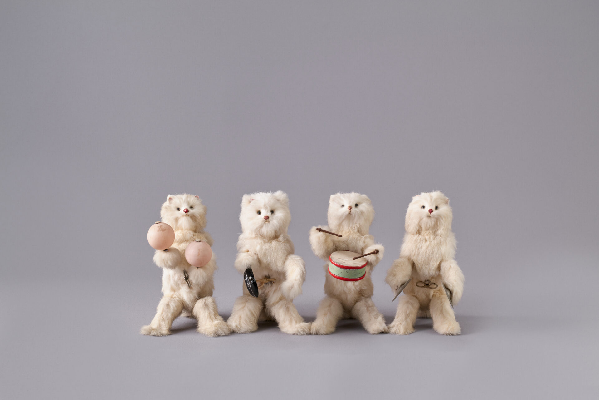 4体の猫が、体を上下に揺すりながら、それぞれが手に持ったマラカス、フライパン、ドラム、シンバルを叩き、全身を使って表情豊かに音を鳴らす。オルゴールは搭載されていない。